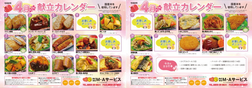 詳しくは以下の矢印の各月カレンダーをクリックして献立をご覧ください